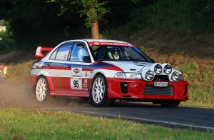 Dieser Lancer Evo V war schon immer in der Schweiz, kam 2016 dort in neue Hände, bis Roman Soltermann ihn 2019 übernahm. Er war in gutem Zustand, weil von den Vorbesitzern kaum gefahren wurde und Roman baute ihn in eine Kopie des Werkswagen von Tommi Mäkinen aus dem Jahre 1998 um.