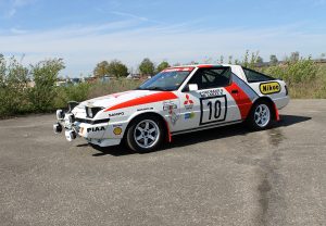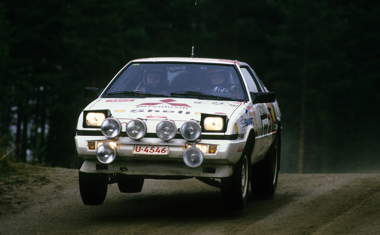 Chez Mitsubishi, en Groupe A, avant toutes les générations de Lancers, il y eut la Starion Turbo. C’était une voiture assez puissante à cause de son turbo, mais qui n’avait que les roues arrière motrices et donc peu de motricité pour passer toute cette puissance. L’équipe d’usine l’a engagé en 1987 principalement au Moyen-Orient comme à Oman, en Jordanie, au Koweït et au Qatar, mais aussi au Rallye des 1000 lacs en Finlande. Sur ce rallye, Lasse Lampi a dû abandonner assez tôt à cause d’un turbo cassé. En 1988, Pentti Airikkala l’a pilotée sur certains événements sélectionnés en Grande-Bretagne.