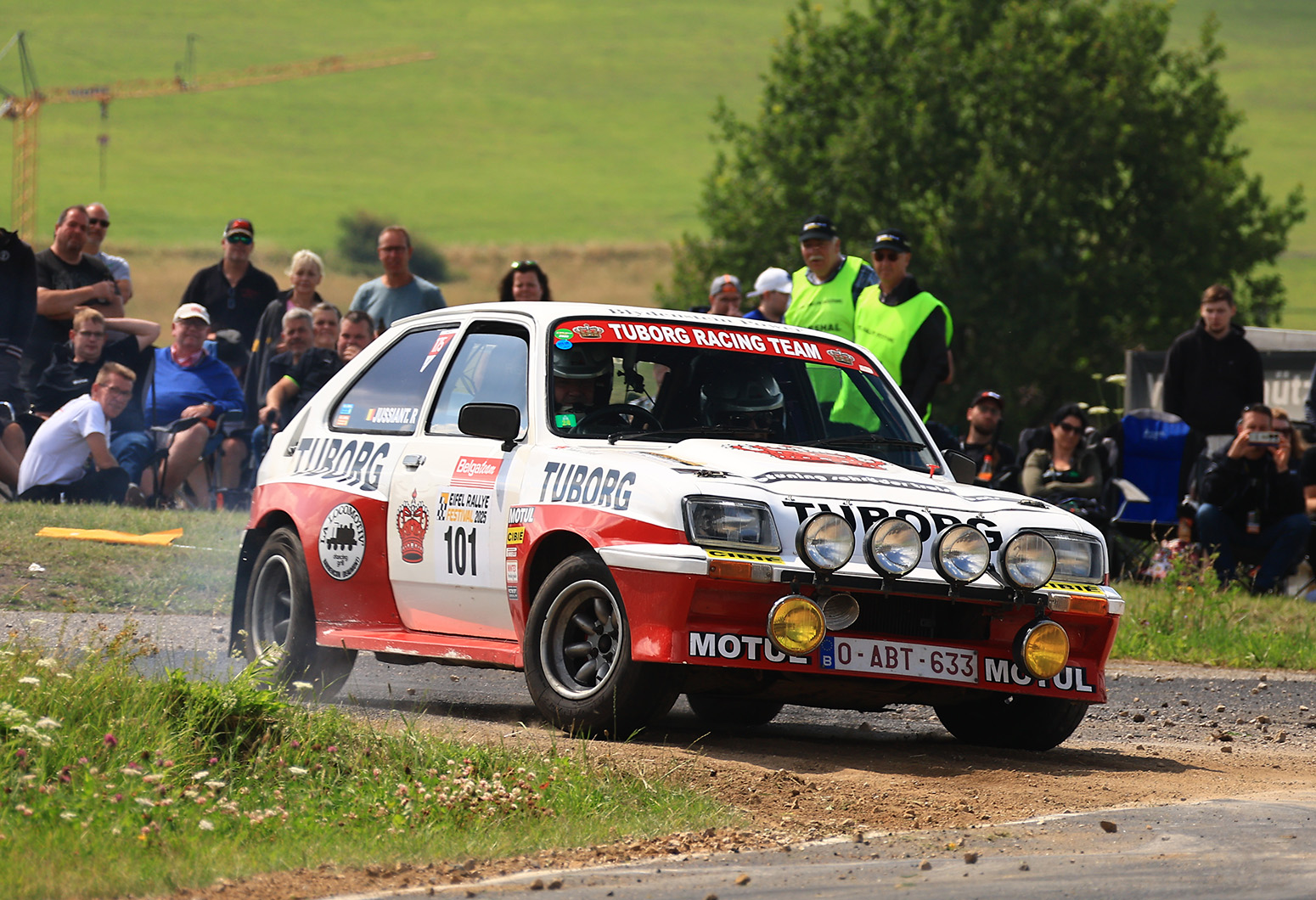 Ronald has been driving rallies in Belgium with various Opel cars since 1997. In 2009, he switched to a Vauxhall Chevette painted yellow and black. From 2015, serious competition came to an end, the Chevette was restored and driven in Tuborg livery at show events from 2021.
